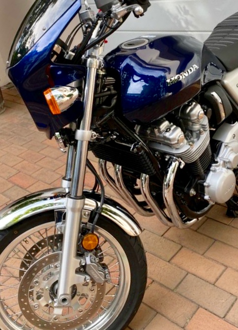 Mir gefällt sie genau so wie sie ist in der Kombination des blauen Tanks mit den Alu-Seitendeckeln. Wäre dieser lackiert gewesen, hätte ich ihn in Aluoptik foliert!