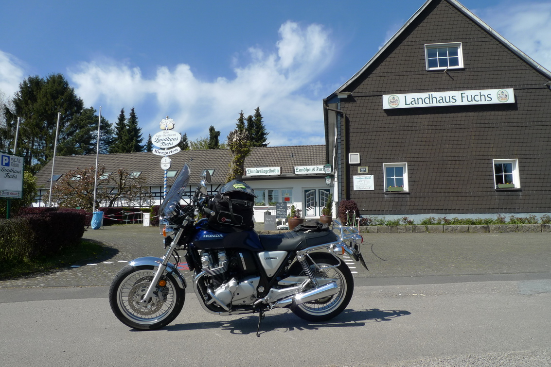 Hatte mal überlegt, den Fehlingträger mit Ledertaschen wie Hepco-Becker Rugged zu kombinieren. Die braune Ausführung hätte vielleicht farblich gut zur blauen CB gepasst. Eine (möglichst abnehmbare) Befestigung am Fehling wäre allerdings zumindest aufwendig, Und sie sind vermutlich auch noch zu groß ohne Blinkerversetzung. Auch an eine Sonderanfertigung von kleineren Taschen in diesem Stil z..B. bei einem Sattler hatte ich gedacht, wäre aber nach meinen Abschätzungen doch sehr kleinvolumig geworden. Aber vielleicht für jemand anderen mit anderen Packvolumenansprüchen eine Überlegung wert?
