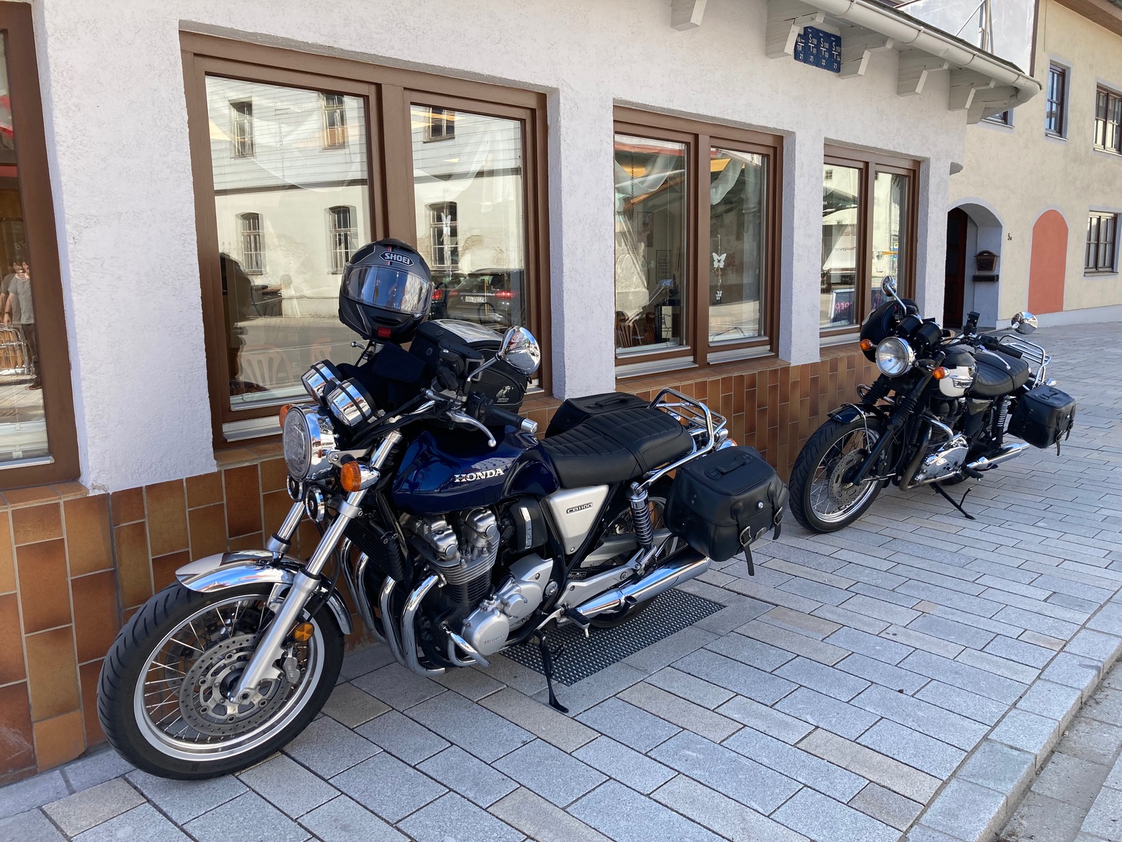 So – heute haben wir die Bonnie beim Freundlichen abgeholt, sie hat jetzt neues Öl, neue Bremsflüssigkeit und neue Reifen (Metzeler Roadtec 01 / fährt glaube ich der eine oder andere hier auch), sowie neu ASU/HU. Für die 917 1/2 Euronen hätte man früher schon fast ein kleines Motorrad bekommen (zumindest zu DM-Zeiten), aber dafür sind wir jetzt bereit für den morgigen Ausflug!