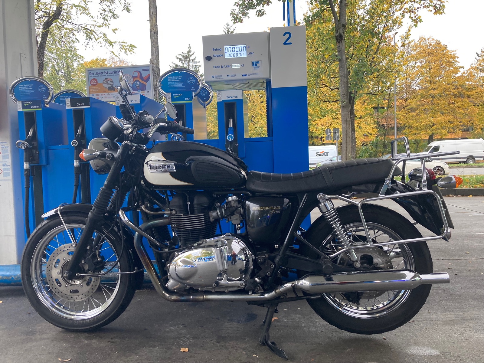 Da morgen (mehr) Regen angesagt ist, heute Spinne, Bonnie und Drache fürs Winterquartier vorbereitet – also waschen und erstmal grob nachputzen, volltanken und mindestens 3 bar auf jeden Reifen. Nach Rückkehr von der Tanke dann auch gleich im zumindest halbwarmen Zustand den Ketten eine Runde Fett aufgesprüht. Alles andere kann dann in Ruhe über den Winter gemacht werden. Zur Belohnung dann Selbstgebackenes und den Kaffee aus der Schraubertasse…