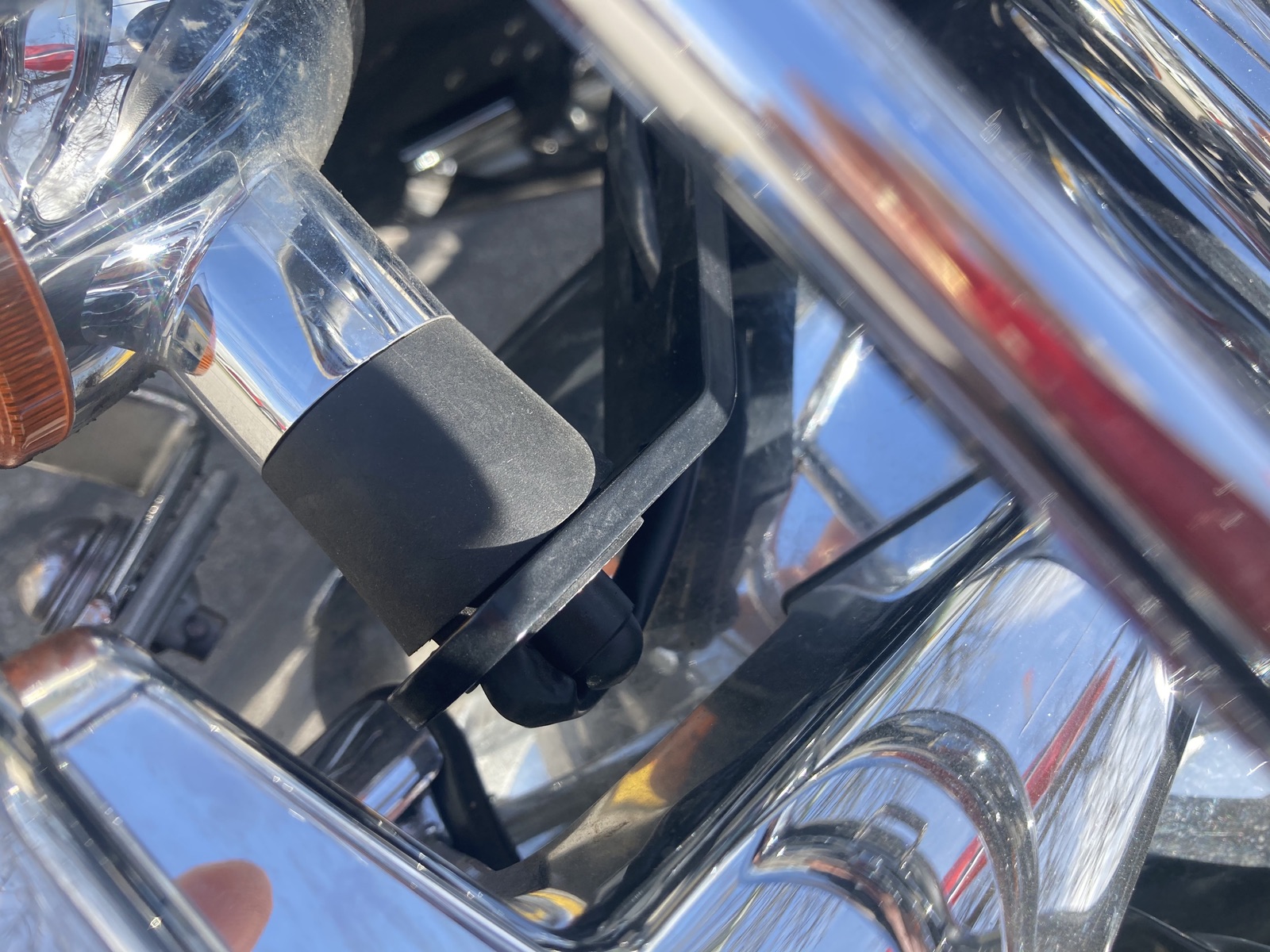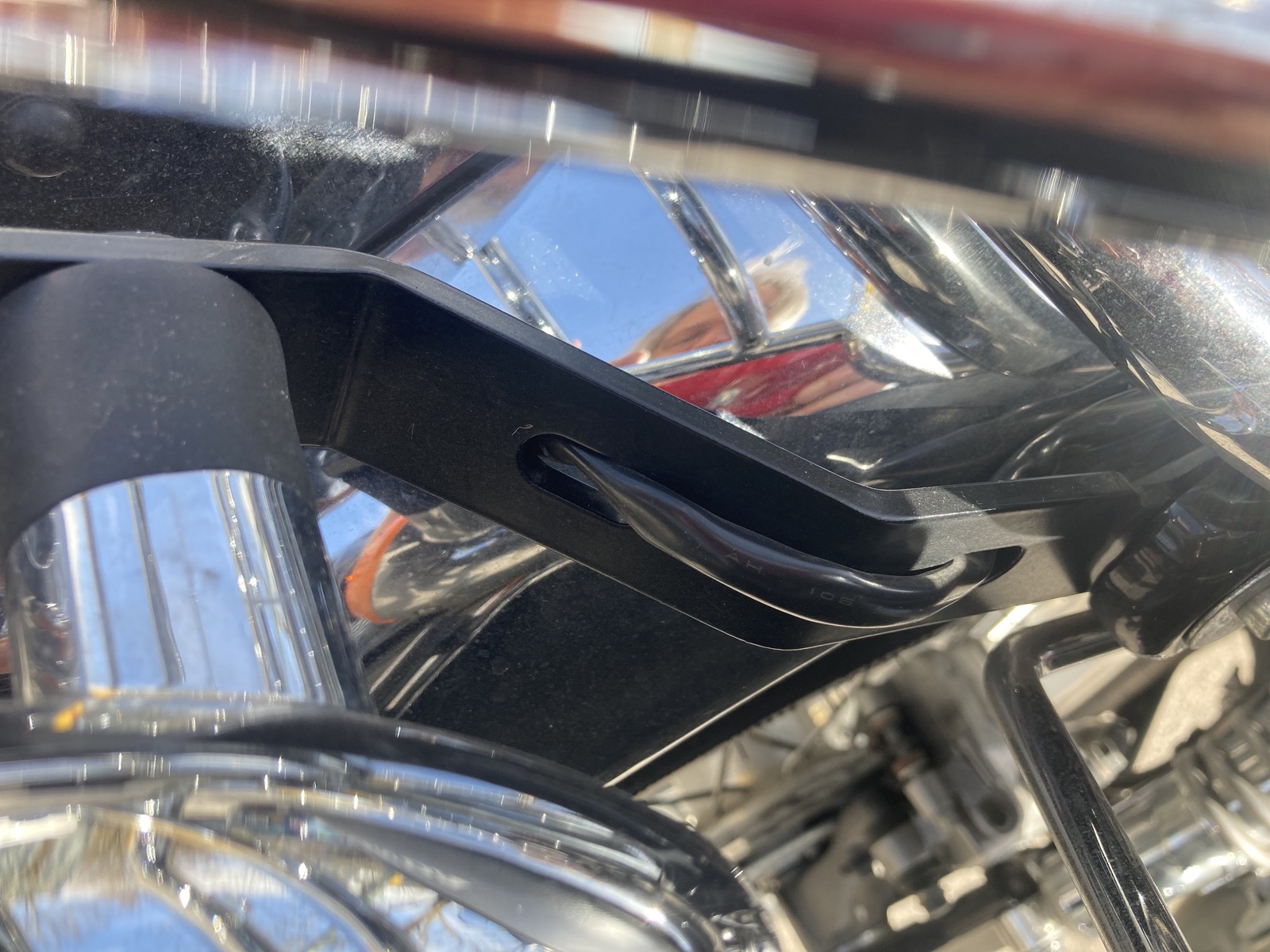 Habe nur Bilder im eingebauten Zustand – hoffe, sie helfen. Die Blinkerversetzungen (in Schwarz um die schwarzen Blinkerkabel weniger auffällig zu gestalten) sitzen bei mir unter einer Gepäckbrücke von Fehling, der zusätzliche Seitenträger von Hepco ist ein verchromter Lock-It (kriegte ich von Hepco auf Anfrage gegen Aufpreis), kombiniert mit Buffalo-Lederkoffern. Die Blinkerversetzung ist so etwas versteckt, aber ich hatte mal wegen einer ähnlichen Anfrage hier im Forum Fotos aus verschiedenen Winkeln gemacht: