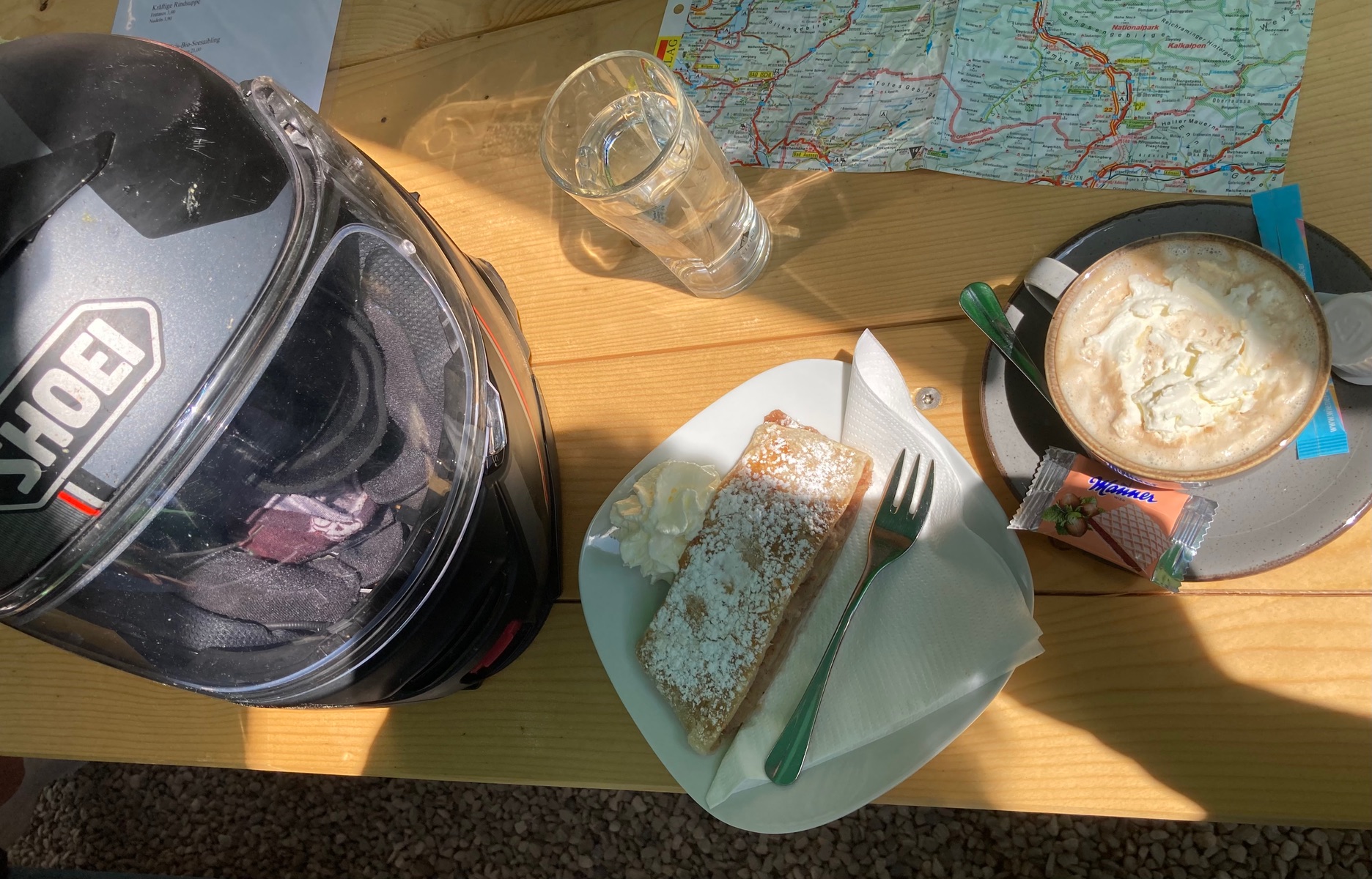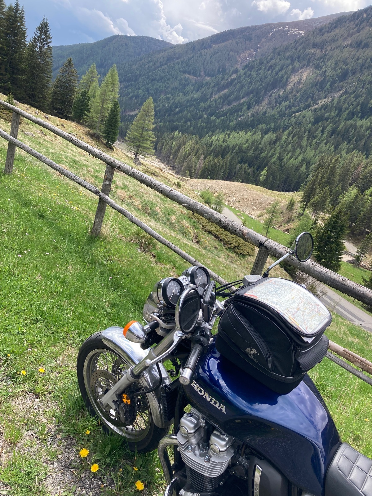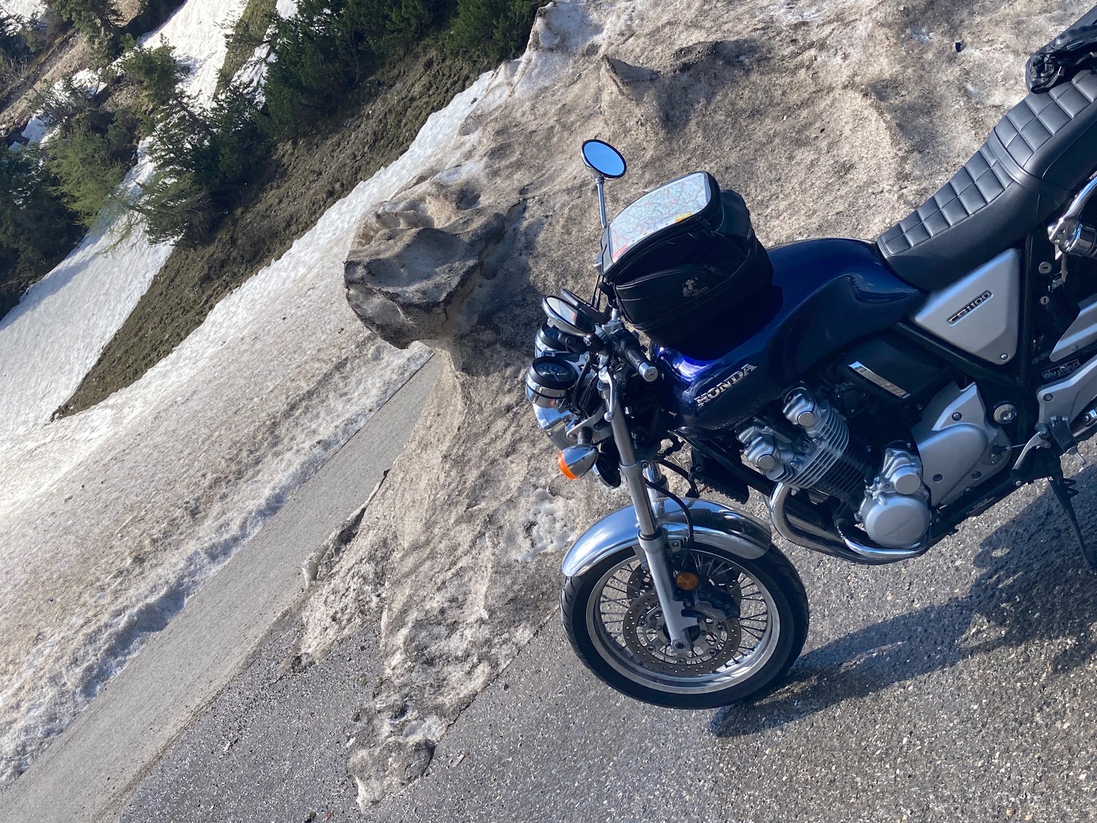 Heute 270km-„Rundflug“ von Losenstein aus, über die Eisenstraße (nannte hier nicht jemand seine CB das „Eisenschwein“?), an viel bewegtem Wasser wie der Ybbs entlang, hoch zu den Restschneefeldern vom Hochkarschacht, auf dem Hengstpass dann die 22000km vollgemacht, und zu Essen gab‘s bei der Pause auch noch was! Gute Straßenzustände bei vielen Kurven und kaum Verkehr, bei blühender Landschaft dank Mai!