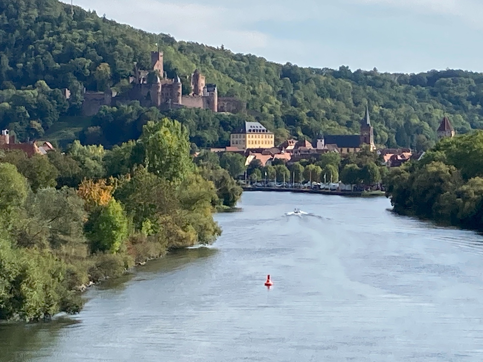 Auch ich bin wieder gestartet, heute fast 500km von München nach Amöneburg (bei Marburg): an der Harburg vorbei, Pause in Rothenburg o.d.T., dann die „Romantische Straße“ an Tauber und Main entlang (unten die Burg über Wertheim), die letzte Pause dann kurz vor Birstein.
