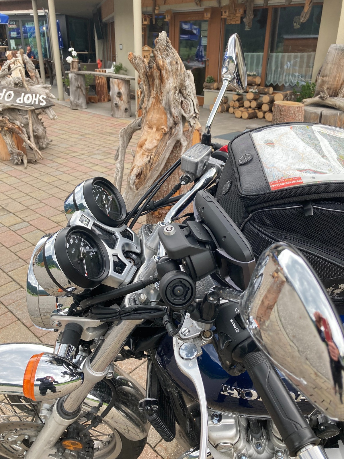 Bin dann die alte Brennerstraße weiter auf der italienischen Seite runter, aus Zeitgründen ab Bolzano bis Trento die Autostrada, und dann durch Landstraße bis Cenica (bei Dro, nördlich vom Lago di Garda in den Bergen. Hier nettes Quartier vorgefunden, aus Zeitgründen zwar nur noch Pizza, aber sehr guten Marzelino dazu, als Abschluss Grappa Hausmarke. Und der Drache hat einen trockenen überdachten Schlafplatz bekommen!