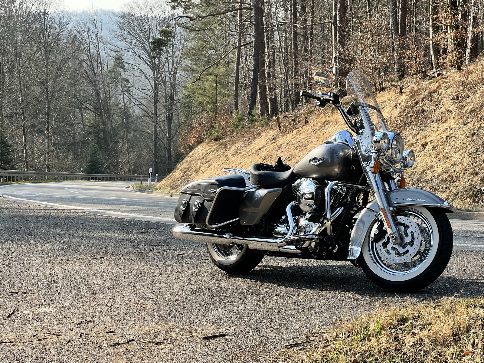 ...eine HD Road King von 2016 - für kurvige Schwarzwaldsträßchen nur bedingt geeignet. Hä#tte eigentlich reichen müssen, aber als ich Bilder der 1100 EX sah, hab' ich die Kontrolle verloren...