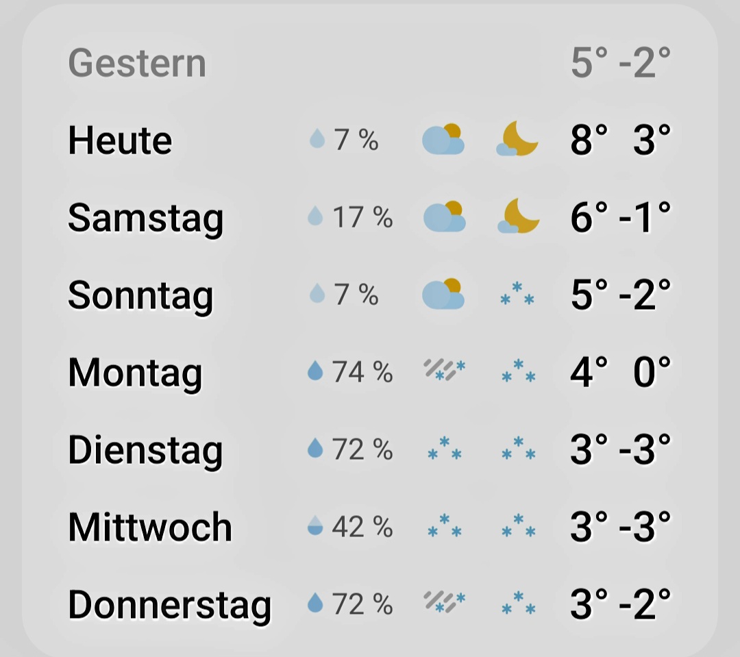 Bei uns dreht sich's auch gerade wieder. Heute noch Sonne und 7 Grad, aber für die CB sind mir die Straßen noch zu sehr mit Salz überzogen...