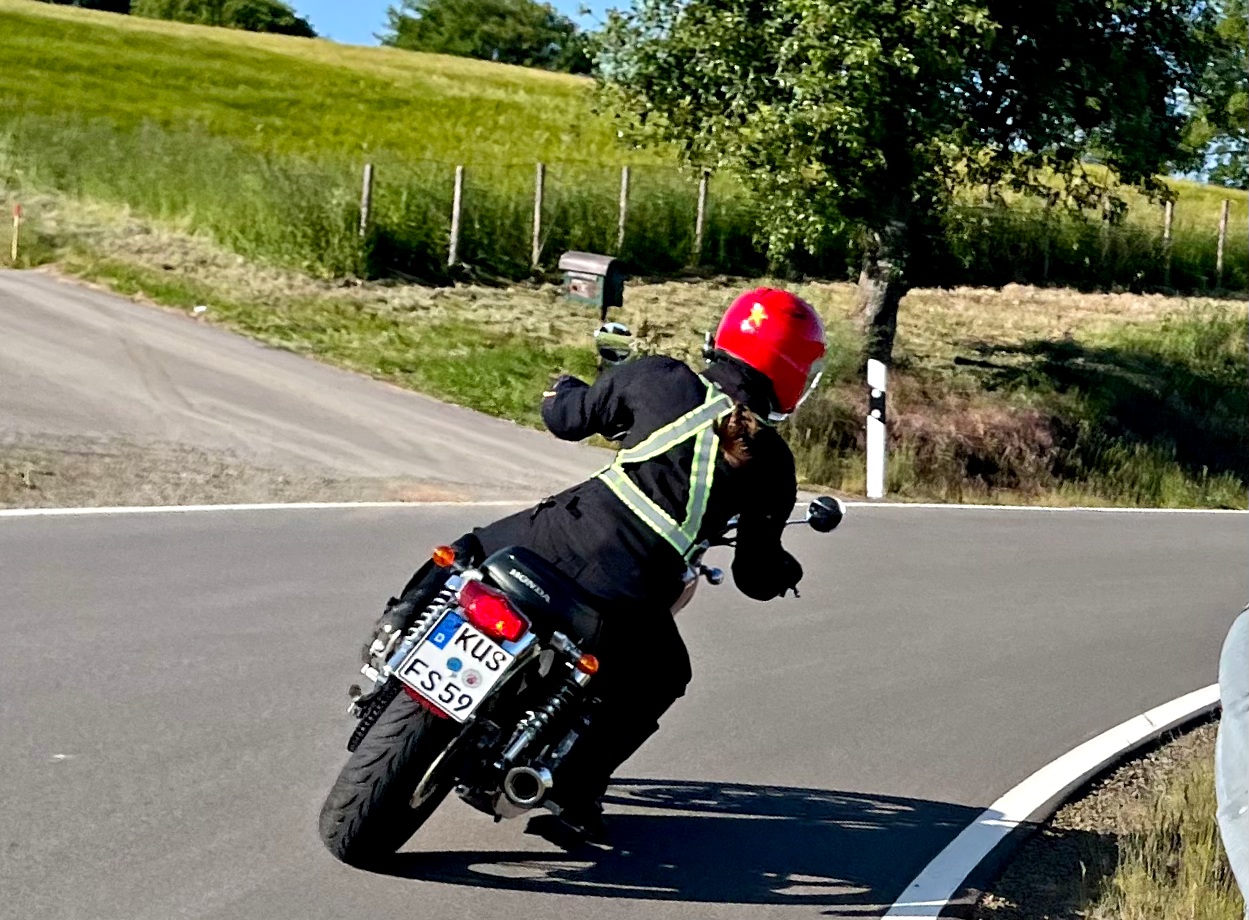Das während der Fahrt-Handy-Bild musste sein, find's immer wieder lustig, wenn die knapp 50Kg die 250+ CB bewegen