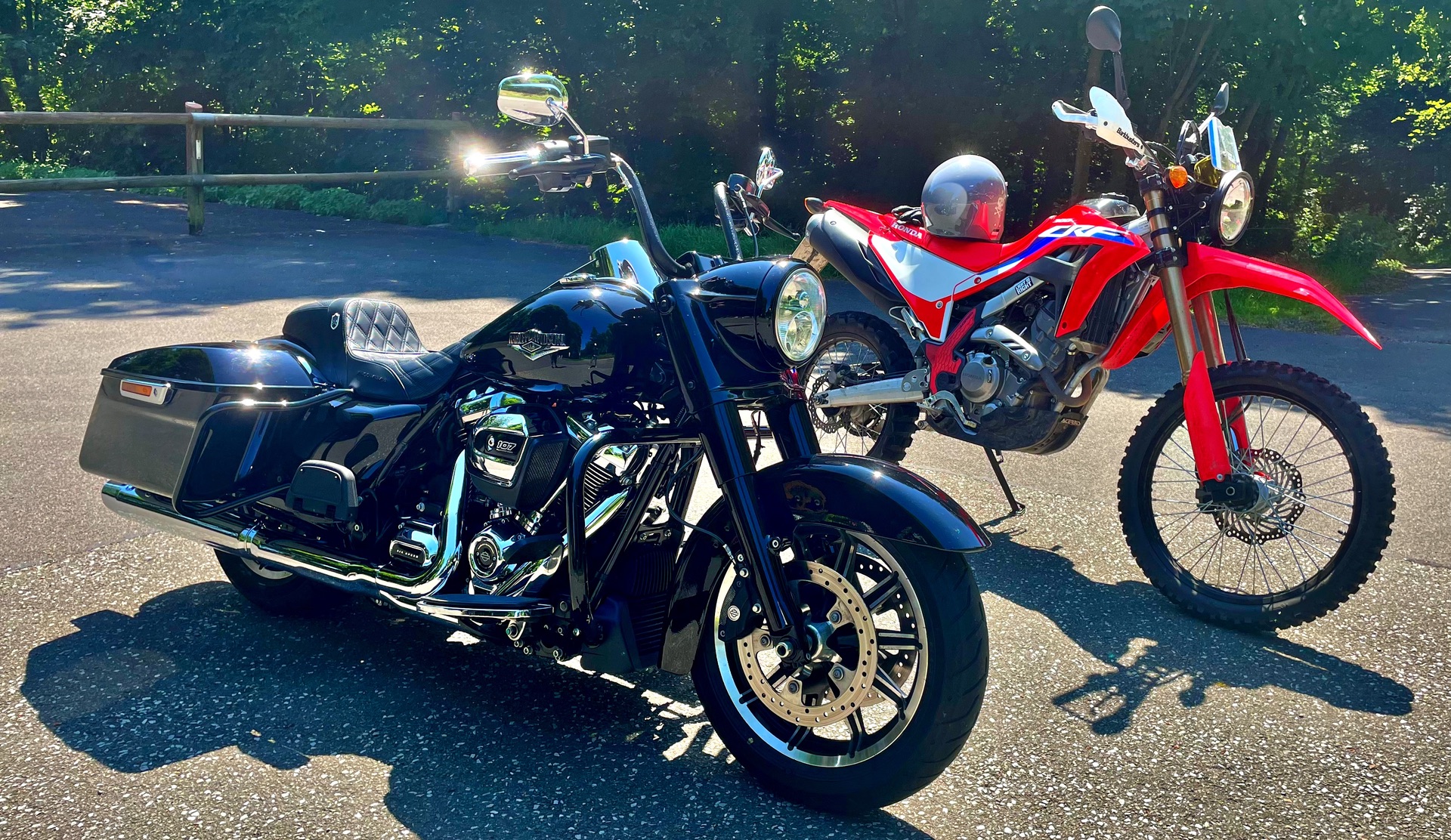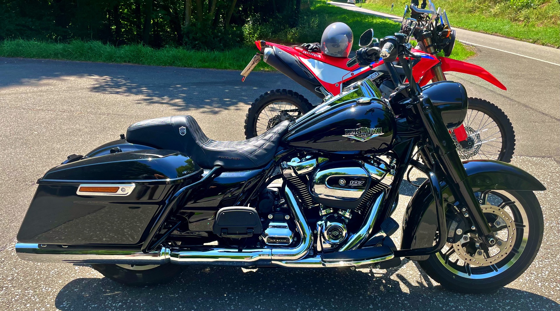 Für die Straßen in unserer Gegend hier ist die CB viel angenehmer zu fahren. Für die Harley einfach viel zu kurvig und holprig, das ist dann irgendwann "Arbeit".