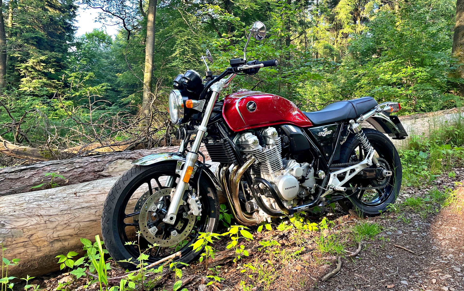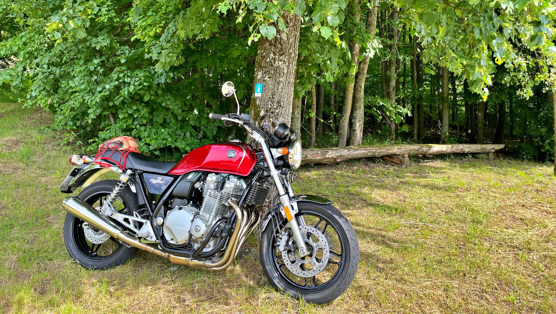 der Baumstamm lag ja wie gerufen da zum dran lehnen mit dem Motorschutzbügel......