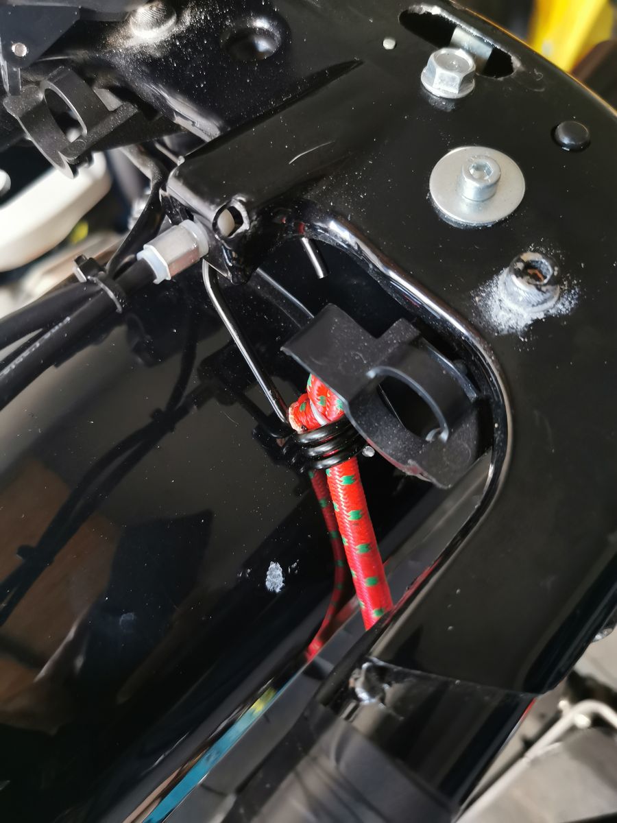 Das bedeutet der Bowdenzug ist Irgenwo verklemmt...den sonst hätte Ich nicht ziehen können. Ich habe den Spanner jetzt mal drangelassen...und mit Panzertape an die Sitzbak Unterseite geklebt ^^. Dann schaue Ich mal demnächst zum Händler...aber immerhin kann Ich die Sitzbank so öffnen.