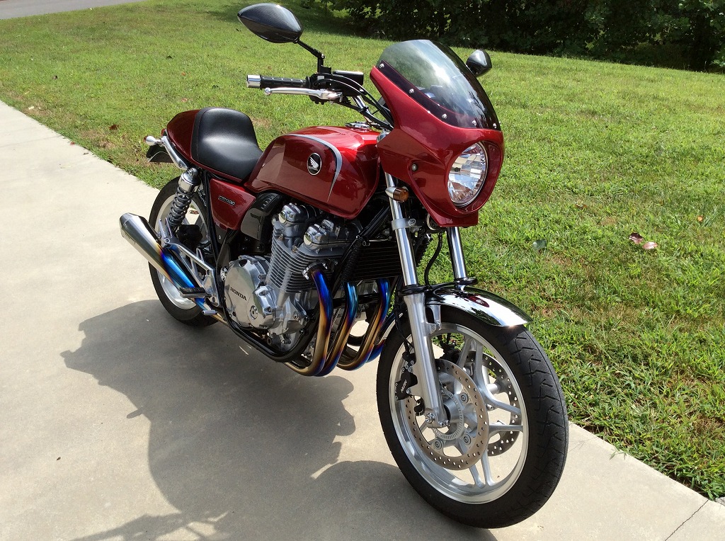 Das ist meinen Cb1100 bj 2013...einiges gemacht ( Wilbers Gabelfedern,Stoßdämpfer,anderes Schutzblech,Lenker,Kupplungs und Gashebel,Sitz,Rücklicht,Kettenschutz,LED Blinker, Auspuff,seitliches Kennzeichenn,einiges schwarz lackiert ) und als neustes Teil die Halbschale von Samuraider aus Japan
