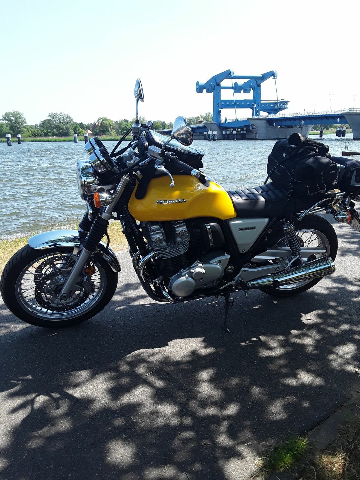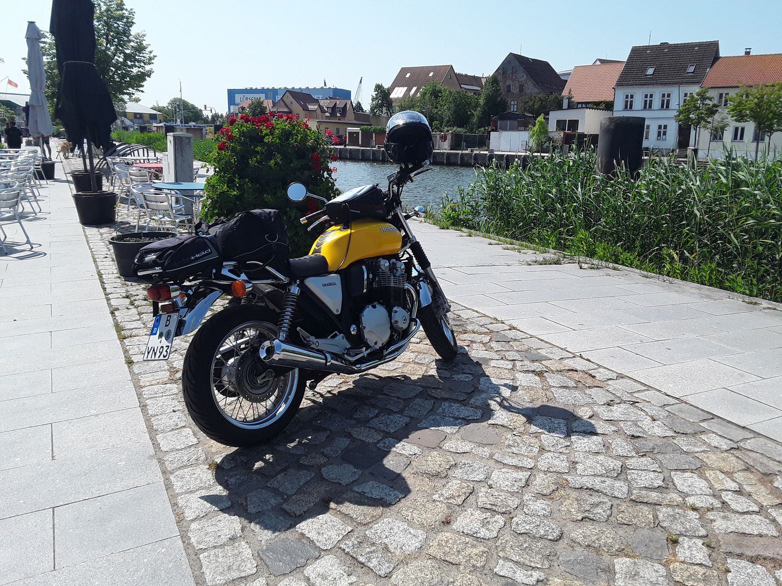 Heute mal mit Old Bike ne Abendrunde gedreht im Berliner Norden und Umland. Ist schon eine Umstellung zur CB aber Scheene ......